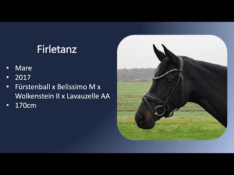 Firletanz, geboren 2017 und im Westfälischen Pferdestammbuch registriert, ist eine bildschöne Rappstute mit beeindruckender Abstammung: Fürstenball x Belissimo. Mit ihrem Stockmaß von 1,69 m, ihrer eleganten Erscheinung und ihrer sanften Art zieht sie jeden sofort in ihren Bann. Diese junge Dame überzeugt nicht nur optisch, sondern auch unter dem Sattel. Firletanz ist bis zur M-Dressur ausgebildet und begeistert mit drei sehr guten Grundgangarten, die dem Reiter jederzeit ein angenehmes, sicheres Gefühl vermitteln. Sie arbeitet fleißig mit, bleibt dabei fein in der Hand und zeigt sich stets motivert. Im täglichen Umgang ist Firletanz ein wahrer Schatz – freundlich, aufmerksam und mit einem Charakter aus Gold. Sie ist schmiedefromm, verladefromm und stets brav beim Tierarzt. Ein unkompliziertes Pferd, das man einfach gern um sich hat. Firletanz sucht nun ein Zuhause, in dem sie geliebt, gefördert und geschätzt wird – einen Menschen, der ihre Herzlichkeit erwidert und mit ihr gemeinsam weiter den Weg geht. Eine außergewöhnliche Stute, die mit ihrem Wesen und ihrer Ausstrahlung jeden Tag schöner macht.