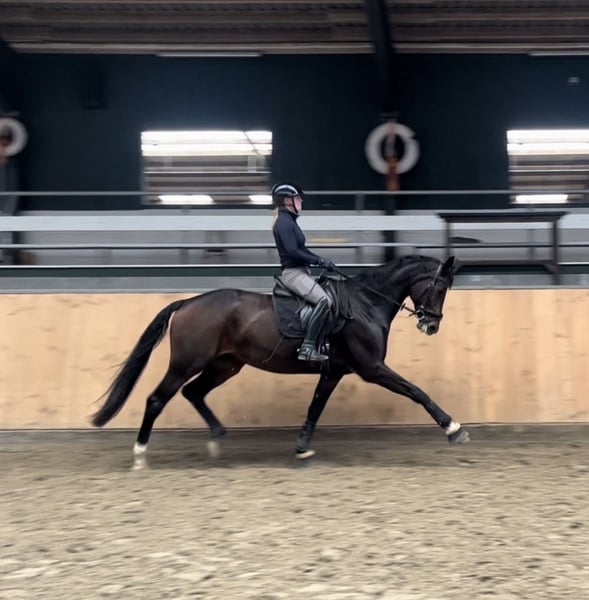 Expressive dressage mare by Zoom with great potential for movement We are offering a 2018-born, dark bay dressage mare by Zoom, who impresses with her quality and remarkable dynamic movement. The mare stands approximately 1.75 meters tall and features outstanding basic gaits with plenty of scope. She is trained to L-level and shows promising talent starting from M-level exercises. She has already demonstrated her sporting ability: - Won A-dressage with a score of 7.8 - Placed in Stil-A jumping with a score of 8.4 She is a very intelligent and eager learner, quickly understanding and executing new lessons. Due to her enormous movement potential, she is best suited for an experienced rider who can nurture her qualities and provide correct training. Minor veterinary findings are available but do not limit her sporting suitability. An exciting opportunity for ambitious dressage riders seeking a horse with future potential in competitive sport. Absolutely well-behaved and people-oriented in handling. Can be loaded alone and goes to the blacksmith without assistance. Serious inquiries are welcome; please contact us for more information.