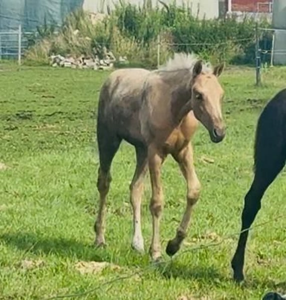Hermosa potra palomino de gran tamaño, hija de Qaside MD x Damon Hill x Romantic Boy, en venta. Fue subcampeona en la exposición de potros en Hinte. Nacida el 30 de abril de 2025. ¡Solo en manos comprobadamente responsables! Ubicación: 26632 Ihlow