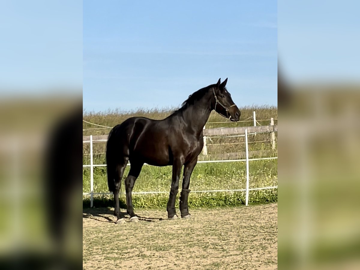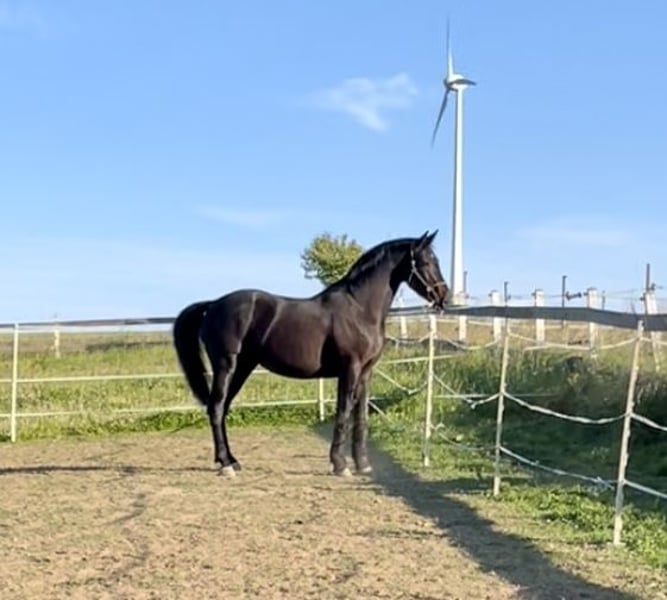 Expressive, stallion-type gelding. He will turn 10 at the end of July, is healthy and without any restrictions. He is very easy to ride and light in the hand, yet also calm and sensible when handled properly. A true "girl's horse" and suitable for riders of all levels. He is very comfortable to sit and has a pleasant temperament. Due to his very consistent and rhythmic canter, I can also easily see him competing in eventing. Additionally, he is absolutely quiet with the farrier and loads alone (he will step in on his own). Currently, he is barefoot and, for private reasons, not in training at the moment, which makes him a bit rounder ;) He shares a paddock with another gelding during the day and spends his nights in his box. He has not been shown in competitions yet due to a lack of ambition from his rider, but he is registered as a competition horse.