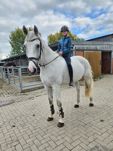 Zum Verkauf steht hier ein großrahmiger, bildschöner Schimmelwallach. ist 10 Jahre alt, super rittig und bringt eine tolle Einstellung zum Sprung mit. Mit Menschen und anderen Pferden ist er freundlich und trotz seiner Größe auch von jungen Reitern immer händelbar. Er kann Turniererfahrung in der Klasse A* und A** vorweisen und hat definitiv das Potential für mehr (siehe Video)! Bei Interesse bitte unter dieser Nummer melden: 017670569890