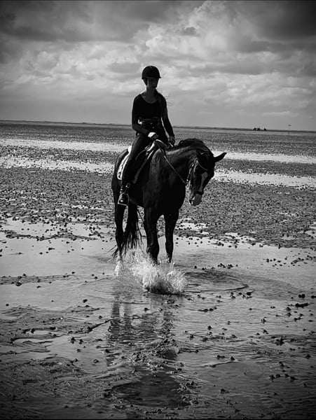 For sale due to personal circumstances is an impressive, unspoiled Westphalian gelding, born on May 3, 2014 - backed in late summer 2018 (+ 3/4 year in the pasture). This magnificent black horse stands out visually with its elegant appearance and impressive gaits. (A stable can be provided for a fee if necessary.) He is a talented dressage specialist and, with his impressive presence and excellent movement, is the perfect partner for ambitious dressage riders with enough potential to shine in the big arena, just like his ancestors. He also performs excellently in show jumping and takes you smoothly over to the other side. He was first jumped in his 8th year of life, which means his legs, to quote the veterinarian who recently performed his vet check, are in great shape, with no abnormalities or injuries. The veterinarian was at a loss for words after triggering the legs during flexion tests, as nothing in his movement changed. He was simply impressed by the health of this horse. In free jumping, he comfortably clears the upper limit of a M** course of 1.40/45 m. There is still potential for much more there. Under saddle, he has only jumped a few L-M* jumps or mini courses due to personal circumstances, which he has handled very well. His character is as remarkable as his appearance. He is an absolute gentleman, very affectionate, always ready to give his best and impress his riders. (With a confident rider who knows what they are doing and wants to achieve, he is truly an extremely reliable partner in all disciplines and levels of riding.) This gelding is not only a talented dressage horse but also a loyal friend. He loves spending time with people and hopefully will soon become a permanent part of your family. If you are looking for a horse with which you can go far, that will take you to the next level in dressage, that you can gently fly over obstacles with, and relax in the countryside while enjoying life together, then this heartthrob is just right for you. With a height of 1.66m, he accommodates taller riders (I, as the rider in the pictures, am 1.83m tall) very well even in the dressage saddle with longer stirrups, despite his beautiful athletic figure. However, he is not a weight carrier. Although he could certainly carry more due to his compact build, I would not wish that for him. Please do not hesitate to contact us for further information. We look forward to bringing you and this extraordinary gelding together. He deserves only the very best, and nothing less is acceptable for us or him. Note: Viewings and test rides are only possible by prior appointment. For the well-being of the horse and to prevent riding tourism, we charge a reasonable fee for test rides, which will of course be deducted from the purchase price. We look forward to your inquiries and hopefully to finding him a wonderful new owner with a great forever home. Best regards, Eileen & S.C.