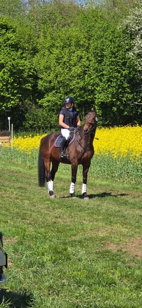 Verkaufe vielseitigen Westfale-Wallach, geb. 2013, braune Farbe, mit einem Stockmaß von 165 cm. Dieser elegante und gut gerittene Wallach überzeugt durch seine Vielseitigkeit und sein Temperament. Er ist sowohl im Dressursport als auch im Springen und der Geländearbeit zuverlässig einsetzbar und zeigt stets eine solide Leistung. Fiego ist freundlich im Umgang und besitzt eine solide Grundausbildung, allerdings hat er auch GO und ist nicht für jeden Anfänger geeignet. Ein idealer Partner für ambitionierte Reiter, die einen zuverlässigen Allrounder suchen. Bei Interesse freue ich mich auf Ihre Kontaktaufnahme.