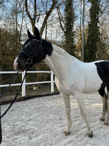 Zum Verkauf steht ein attraktiver Westfalenwallach mit besonderer Optik und guter Abstammung; Belconi (Bellissimo) x Fidermark Der 2013 geborene Schecke hat ein Stockmaß von ca. 1,73 m und ist auf L-Niveau ausgebildet. Er verfügt über drei gute Grundgangarten. Er war mehrere Jahre zuverlässig im Schulbetrieb im Einsatz, weshalb er über viel Routine verfügt. Auch kleinere Sprünge meistert er problemlos. Zudem ist er geländesicher und kennt unterschiedliche Einsatzbereiche. Er wurde ebenfalls im Voltigieren eingesetzt, sollte dies jedoch künftig nicht mehr ausüben. Charakterlich zeigt er sich zuverlässig und brav im Umgang. Unter dem Reiter ist er ehrlich – er steigt und bockt nicht, kann jedoch gelegentlich etwas „guckig“ sein, weshalb wir ihn eher für erfahrene Reiter empfehlen. Als ehemaliges Schulpferd weiß er zu schwache Reiter einzuschätzen. Für erfahrene Reiter macht er aber einen wirklich guten Job. Turniererfahrung ist vorhanden: Er konnte sich zuletzt in E- und A-Dressur platzieren. Aktuell ist er geimpft und regelmäßig entwurmt. Da er im intensiven Schulbetrieb nicht mehr glücklich ist und wir den Eindruck haben, dass ihm eine geringere Belastung und ein einzelner Bezugspartner besser entspricht, wünschen wir uns für ihn ein neues Zuhause mit abwechslungsreicher, angepasster Arbeit. Es wäre schön, wenn er bei seinem neuen Besitzer mehr Paddock oder Wiese genießen könnte. Bellagio kann jederzeit nach Absprache probegeritten werden. Standort Berlin. Video wird derzeit erstellt und kann dann angefordert werden.