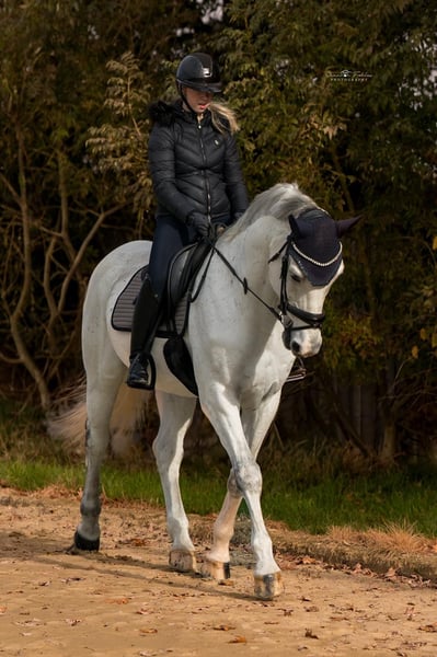 Westphalian Grey Gelding – Loving Leisure & Jumping Partner with Charm Casanova is a 16-year-old Westphalian gelding (born January 24, 2009) with a height of approximately 16.1 hh. He is a very sweet, affectionate grey who enjoys human company and always presents himself in a friendly manner. Casanova was trained up to M* level by the breeder, then in second hand up to L, and has mostly been used at A* to A** level with me. He easily handles individual jumps up to about 130/135 cm. He works motivatedly and is familiar with groundwork, dressage, lunging, double longe, jumping, hacking, and walks. Different riders pose no problem for him. In the field, he is well-behaved but a bit shy when alone and feels much more comfortable in company, preferably following another horse. In dressage, he finds it difficult to maintain consistent contact and to swing truly through his body, so he needs a sensitive and patient rider in this discipline. In handling, Casanova is completely uncomplicated: he is used to being tied on one or both sides, whether in the grooming area, stable aisle, or wash box. He enjoys grooming, washing, clipping, and daily preparation. He is very well-behaved at the blacksmith and has always been shod with full shoes. On pasture or paddock, he gets along well both alone and with other horses. He has shown no vices such as rearing, kicking, or bucking. He is generally healthy. He has a dust allergy but copes well with moist or steamed hay and has shown no issues since April 2025 when fed normal dry hay from the manger. Additionally, due to an accident as a foal, he has a crooked nasal septum that causes a breathing noise but does not impair him. Blood gas analyses were within the normal, good range. Due to his age, Casanova is an ideal reliable leisure partner who still enjoys occasional competition and has always behaved well there. He is located in the Kleve district and is offered for €10,500 negotiable. For inquiries or questions, please feel free to contact +49 177 4635428. To prevent riding tourism, we charge €30 per trial ride, which will be credited upon purchase.