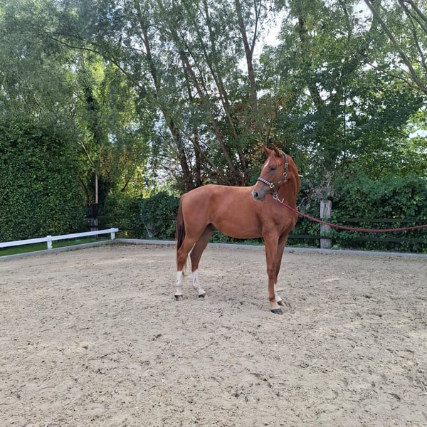 ***Veuillez envoyer un message pour plus de vidéos*** Visite possible à tout moment *** À vendre, un hongre de 2 ans, né chez nous, avec les meilleures prédispositions pour le sport et les loisirs. Élevé depuis son jeune âge dans un environnement aimant et compétent, il se montre particulièrement désireux d'apprendre, attaché aux humains et en bonne santé. Ses très bonnes allures fondamentales sont déjà impressionnantes. Il a les bases nécessaires pour devenir un partenaire fiable dans le sport ou les loisirs plus tard. Il connaît les visites régulières du maréchal-ferrant, est habitué à la longe et à un petit 1x1 dans les interactions. Origine : Dynamik Dream x Devereaux Particularités : correct, en bonne santé, amical de nature