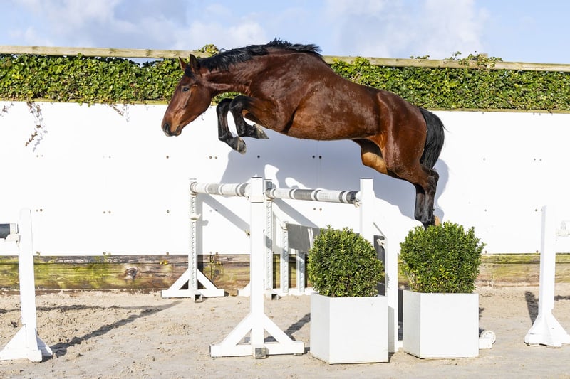 Dakota is een modern springpaard met een goede manier en kwaliteit op de sprong. Hij heeft een goede afdruk, is snel van de grond en toont zich voorzichtig. Lichtvoetig, met een goede instelling en inzet. In beweging valt zijn zeer lichtvoetige draf op en hij galoppeert mooi opwaarts, wat hem later comfortabel maakt in het rijden. Vader Diathago sprong op 1.55m niveau en is een zoon van Diamant de Semilly (1.60m Grand Prix), één van de meest invloedrijke verervers in de springsport. Hij bracht al meerdere sportpaarden op niveau, waaronder Don Lamoor (1.50m), Diathoki (1.50m) en Dia-Con-Luni (1.45m). Moeder Carina is een dochter van Cornado I (1.65m Grand Prix) en voert daarmee de sterke genen van Cornet Obolensky. Een moderne, prestatiegerichte combinatie. De moederlijn is correct opgebouwd: Don Dino – 1.30m Contract – goedgekeurde hengst Een pedigree met bewezen Grand Prix genen aan vaderszijde en een moderne, bloedgemaakte moederlijn.