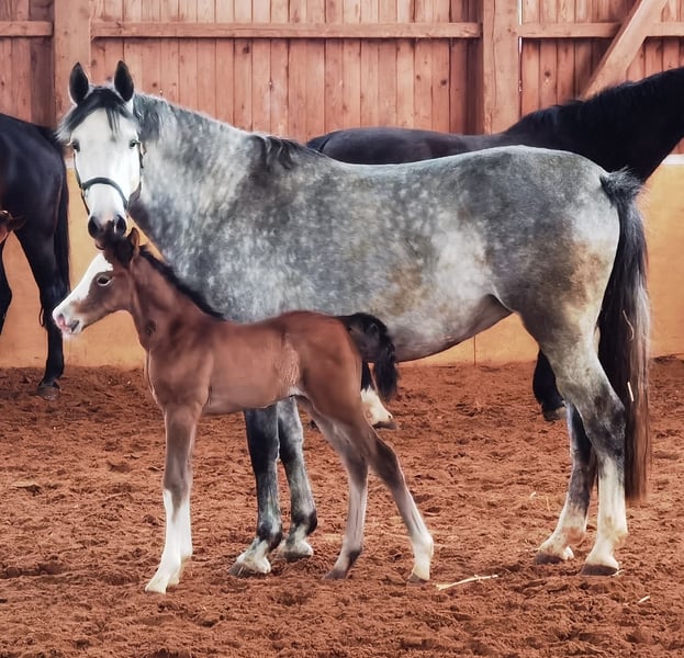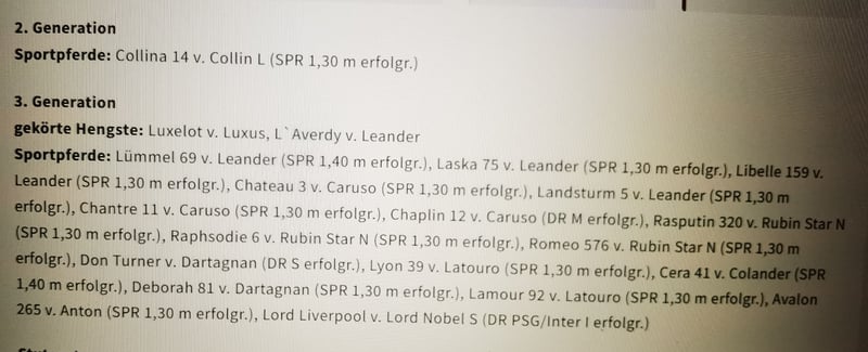 Eisprinz ist aus dem ersten Fohlenjahrgang des Esmeraldo (Janne Frederike Meyer-Zimmermann). Selbst Körungssieger in Holstein und HLP Sieger. Eisprinz ist sehr aufgeschlossen und sehr schick und hat neben einer sehr guten Galoppade auch einen sehr guten Trab. Seine Mutter Chanel war selbst Waise und stammt aus einer sporterfolgreichen Mutterlinie , deren Nachkommen erfolgreich internationale Erfolge hatten. Großmutter Jowani , Hengstmutter und Hengstgroßmutter, hatte selbst 19 Fohlen , die erfolgreich bis Mächtigkeitsspringen gingen. Die gemachte Angaben sind unverbindliche Beschreibungen und stellen keine zugesicherten Eigenschaften dar. Der Verkäufer haftet nicht für Irrtümer, Eingabefehler und Datenübermittlungsfehler