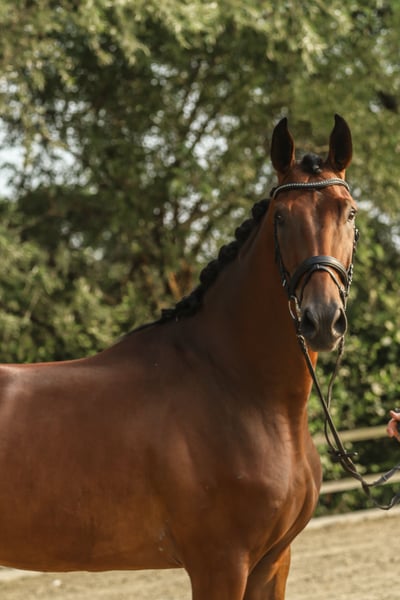 3-year-old gelding by Taurus out of a Deveraux mare. He possesses three very good basic gaits, with the walk and trot being particularly noteworthy. He has already been backed, is familiar with long lining and groundwork. Everything has been developed playfully by amateurs. He has a friendly and alert character. I have also ridden him without a saddle. He is accustomed to box housing with pasture (group housing until 3 years old). He is unproblematic in the lunge, washing area, etc. Sale due to small children, lack of time, and space. However, due to his age, he is not suitable for beginners. For more information, please feel free to call! He was able to grow up relaxed in a herd on large pastures. Breeder's TÜV without special findings. ECVM free and good back X-rays.