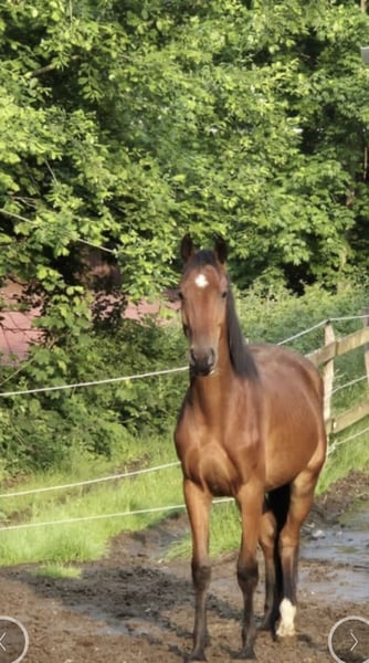 Beautiful Westphalian Gelding Baggio x Chello I / Contender for sale. We are looking for a new nurturing home for our talented four-year-old Westphalian gelding with a heart of gold! This young gelding impresses not only with his attractive appearance but also with his potential in jumping. He already shows promising signs and has a great attitude towards work. He is still "green," meaning he is not yet backed. He is well-mannered, easy to handle, and has a very friendly character. Additionally, Baggiano is completely fearless. Ideal for riders seeking a talented partner with potential for the sport or simply a very loyal companion for leisure riding. Truly a dream type to fall in love with! If you are interested or have any questions, we look forward to hearing from you! Please contact us by phone or WhatsApp at +49 1520 4111038.
