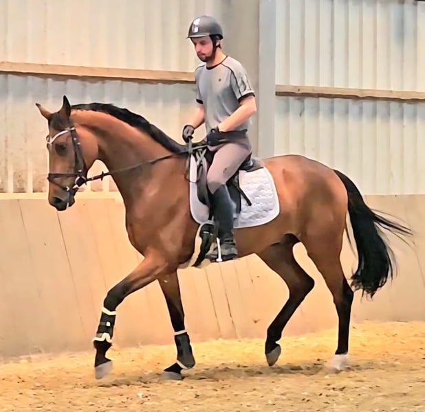 Wir bieten aus eigener Zucht einen 4 jährigen Wallach von First Deal x Don Index an. Er befindet sich gerade am Anfang seiner Ausbildung und besticht durch viel Lernbereitschaft und Vermögen. Er hat ein wahnsinns Takt und eine sehr ausgeglichene Art. Mit liebe groß gezogen zeigt er jetzt viel Talent was die Dressur angeht und vielversprechende Ansätze und ist perfekt für ambitionierte Reiter. Dieser elegante Braune Wallach besticht durch sein harmonisches Exterieur und hat ein Stockmaß von 168 cm. Er ist brav im Umgang, gut erzogen und hat ein einwandfreies Gesundheitszeugnis. Dieser Wedtfale hat das Potenzial, sich in der Dressur weiterzuentwickeln und viel Freude zu bereiten. TÜV: o.B.b. Bei Interesse oder für weitere Informationen stehen wir Ihnen gerne zur Verfügung