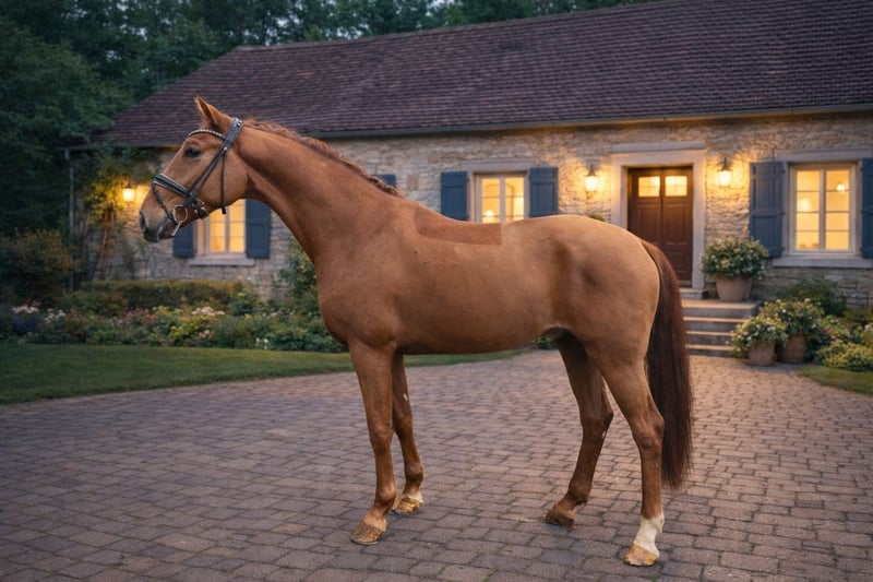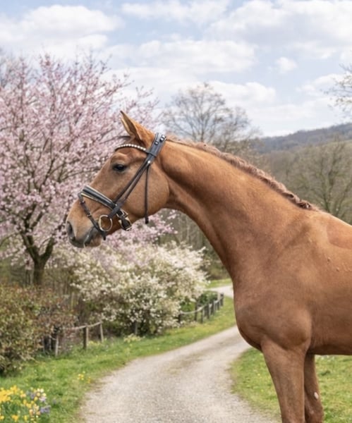 Vielleicht noch etwas Grün hinter den Ohren, aber brav und rittig präsentiert sich dieser 4 j Wallach mit Traumpedigree mit drei sehr guten GGA, ideal für erfahrenen Amateur zum Selbstausbilden! Top Einstellung und Charakter, er bringt Alles mit! Sehr guter Tüv ! Standort Bielefeld 01703004835