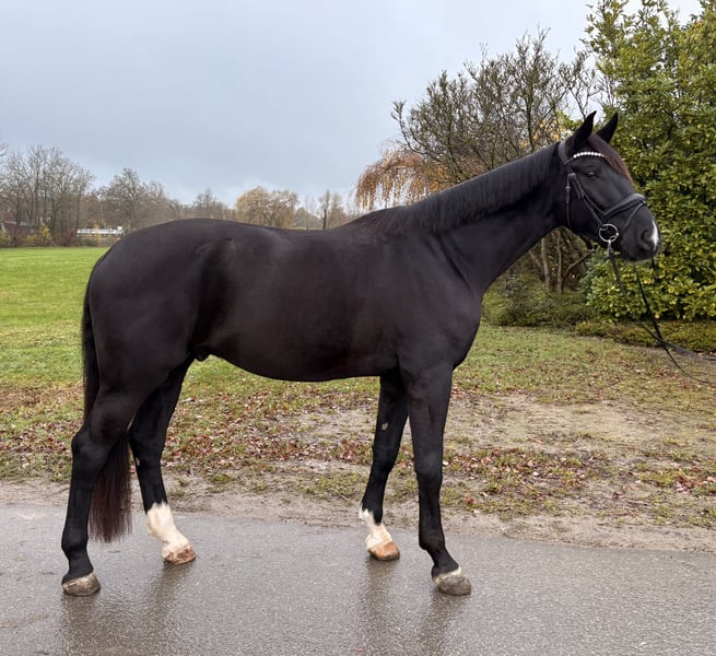 ✨ Duke of Devon – Ein charakterstarker 4-jähriger Wallach mit Größe & Potenzial ✨ Rasse: Warmblut/ Westfale Geschlecht: Wallach Alter: 4 Jahre (aus April 2021) Farbe: Schwarzbraun Stockmaß: ca. 178 cm Duke ist ein beeindruckender, schwarzbrauner Wallach, abstammend von Diamond Deluxe x Rittmeister, mit viel Präsenz und einem absolut zuverlässigen, braven Charakter. Als Fohlen gekauft und seitdem behutsam sowie professionell gefördert, zeigt er sich stets kooperativ und lernbereit. Ausbildung & Können: Schonend mit 3,5 Jahren angeritten Aktuell auf Dressurpferde A-Niveau Springt kleinen Parcours Geländesicher, allein und in der Gruppe Kindergeeignet an der Longe Verladefromm und unkompliziert im Transport Kennt Auswärtstraining und bleibt auch fremden Umgebungen gegenüber gelassen Offenstall und Boxhaltung vertraut Umgang & Temperament: Duke ist im täglichen Umgang ein absoluter Schatz: brav, menschenbezogen, ehrlich und nervenstark – ein Pferd, das immer gefallen möchte und sich sehr leicht händeln lässt. Geeignet für: Dressur-orientierte Reiter (Schwerpunkt) Vereinspferd durch sein ausgeglichenes Wesen Voltigierpferd aufgrund seiner Größe, Ruhe und Gelassenheit Ambitionierte Turnier- oder Freizeitreiter Reiter, die ein großes, verlässliches Nachwuchspferd suchen Grund des Verkaufs: Der Verkauf erfolgt nur, weil Duke aufgrund eines leichten tierärztlichen Befunds nicht den sportlichen Ambitionen der Besitzerin entspricht. Für ein angepasstes Einsatzgebiet ist er weiterhin uneingeschränkt nutzbar. Details werden transparent im persönlichen Gespräch erläutert. Ein ehrlicher, talentierter Youngster mit bestem Charakter – bereit für seinen neuen Wirkungskreis.