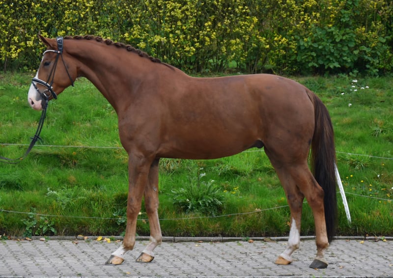 Na sprzedaż wystawiony jest ten trzyletni, około 179 cm wysoki wałach od Self Made x Pheres. Santiano to przyjazny i ciekawski koń, dobrze i bardzo posłusznie wytrenowany, łatwy i niewymagający w jeździe. Szczególnie wyróżnia się równym, uniesionym w górę galopem, który od razu przyciąga uwagę. Santiano jest zgodny z stadem i w kontaktach wykazuje się posłuszeństwem. Piękny, duży koń młodego pokolenia, z pewnością będzie ozdobą na ujeżdżalni! Zdjęcia rentgenowskie dostępne. ‼️ W przypadku zainteresowania i chęci obejrzenia filmów prosimy wyłącznie o kontakt telefoniczny lub przez WhatsApp pod numerem 017621729218. Zapytania przez eBay lub ehorses nie będą rozpatrywane. ‼️ Koń nie jest dostępny do sprzedaży na raty i nie można go odłożyć w czasie.