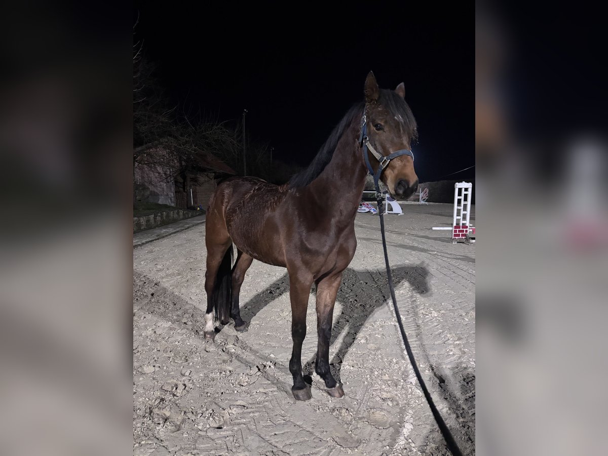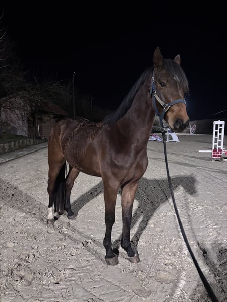 Berlin ist ein 5 jähriger Wallach mit viel Vermögen und Einstellung am Sprung. Beim Freispringen lässt sich seine Qualität deutlich erkennen. Er ist momentan ca. 1,67m groß aber noch sehr schmal und unfertig. Er wurde ca. 2 Monate angeritten und läuft brav Schritt, Trab, Galopp. Er hat auch die ersten Sprünge unterm Reiter sehr brav absolviert. Steht aber natürlich noch ganz am Anfang seiner Ausbildung. Da wir Momentan aufgrund von Zeit- / Reitermangel nicht dazu in der Lage sind ihn weiter Auszubilden steht er nun zum Verkauf. Er läuft momentan wieder mit weiteren Jungpferden auf einer großen Wiese mit 24/7 Heu. Er wurde Vor ca. 3 Monaten Geröngt inkl. Rücken. Er war nie krank oder verletzt.
