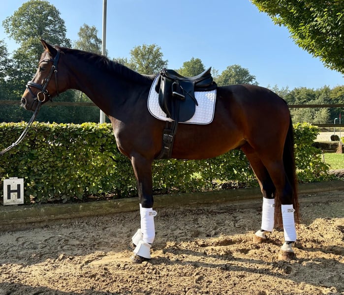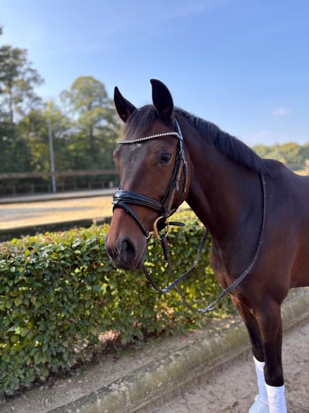 "Fly" is a beautiful six-year-old Westphalian. Due to his delicate build, he has had a bit of "growing and playing time" in the pasture and has been in consistent training for a year now. He is an exceptionally friendly horse who wants to please his rider but still needs a little help in some areas. He loads easily onto the trailer, is very well-behaved with the farrier, and is absolutely trail-worthy (both alone and in a group). Fly has been presented in a Dressage A competition (WN 7.2) where he was extremely confident. He enjoys jumping several small jumps in succession, making him suitable for all areas of equestrian sports. We are looking for a nice home for him where he can continue to develop and showcase his Prince Charming qualities. Ideal for juniors and amateurs looking for a quality young horse for the coming years. (Phone contact daily between 3:00 PM and 8:00 PM)