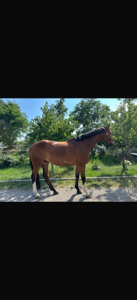 In vendita un bellissimo castrone baio di 6 anni. Jonny è un cavallo molto talentuoso, con un ottimo GGA per il grande quadrato. Già a 5 anni ha dimostrato le sue qualità in gara e ha vinto due volte le prove per giovani cavalli! È stato iniziato più tardi e ha lavorato molto a terra. È un cavallo molto sensibile e viene venduto anche a un cavaliere sensibile che possa continuare a svilupparlo sportivamente. Non è un cavallo da tempo libero né adatto ai principianti! Ha già imparato i esercizi di versatili, sia in trotto che in galoppo, naturalmente a livello di cavalli giovani. Il TÜV può essere effettuato su richiesta, a spese dell'acquirente. Il TÜV del 2025 era senza rilevazioni! Si prega di contattare solo persone seriamente interessate!!! Video su richiesta! Email o WhatsApp La prova di monta costa 50€!!! Si trova in Austria, vicino a Vienna.