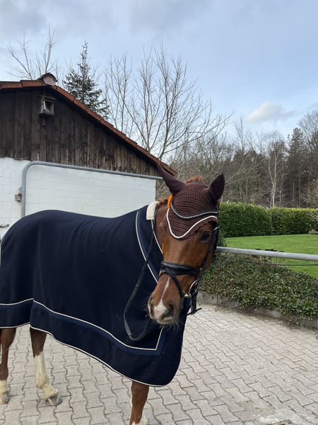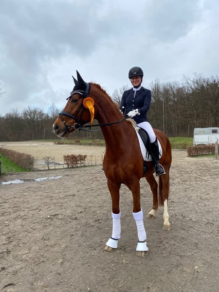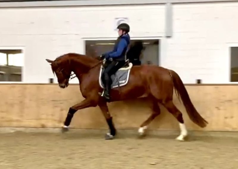 We are offering our 7-year-old, 1.75 m tall chestnut gelding for sale. He is an absolute charmer with a strong nerve, always friendly in handling and very people-oriented. The gelding is easy to ride, comfortable to sit, with lively, expressive movements. He goes calmly into the terrain, is uncomplicated in handling, and always strives to do everything right – a true reliable partner! He is trained and successful up to L-level dressage, but due to a past sport injury, he is now only offered as a leisure horse. He is no longer fully suitable for competitive sport but is perfect for relaxed rides and dressage work at A-level and recreational riding. Excellent character, gentle in the stable, and social within the herd. If genuinely interested, I look forward to receiving a message and arranging a personal meeting on-site. Test rides possible by appointment. More information can also be found here: https://www.rimondo.com/de/horse-details/1778698/selected-3 For further details and to schedule a viewing, please call: 0173 7654389