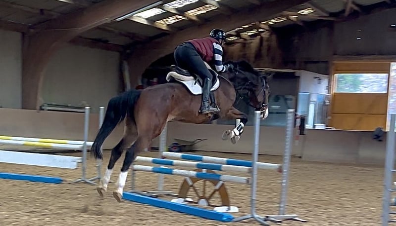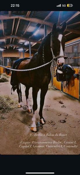 ⭐️ AKU available and in good condition ⭐️ Sire: Berlin x Balou du Rouet - Cassini I, Capitol I, Grannus, Contendro I, Contender ⭐️ Born in 2017 ⭐️ Gelding ⭐️ 16.1 hh (1,76 m) ⭐️ Herd-safe ⭐️ Load and farrier-friendly ⭐️ Ridden by children ⭐️ Calm and well-behaved in the field (in a group) ⭐️ Located in Würzburg ⭐️ Transport available at an additional cost ⭐️ Training possible ⭐️ Large AKU available for approx. €800 ⭐️ On behalf of the owner A very sweet gelding with the typical show jumping horse conformation and an exceptional markings. The gelding is an absolute sweetheart in handling and can be easily managed by children. Under saddle, he is ridden with sensitivity. He is eager to please and always very grateful for harmonious riding, showing this clearly. He needs some muscular training for sustained collected canter. He has also been ridden by children and beginners and has shown great effort and patience during trial lunging, despite no formal training. In the field, he is a bit insecure alone but completely unafraid and well-behaved with another horse. Only serious inquiries with genuine interest will be answered. Unreasonable or rude inquiries will not be considered. A trial ride costs €25, which will be deducted from the purchase price. Beginners only with the accompaniment of an experienced trainer. Price may increase with further training and education.