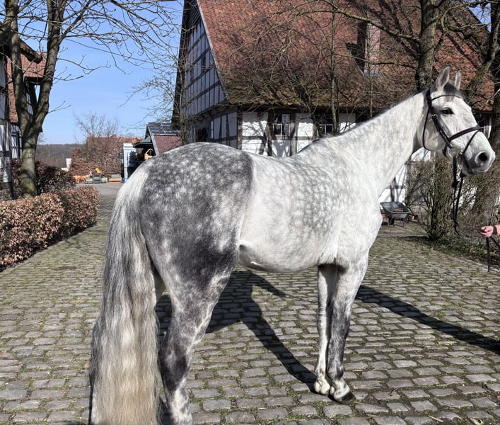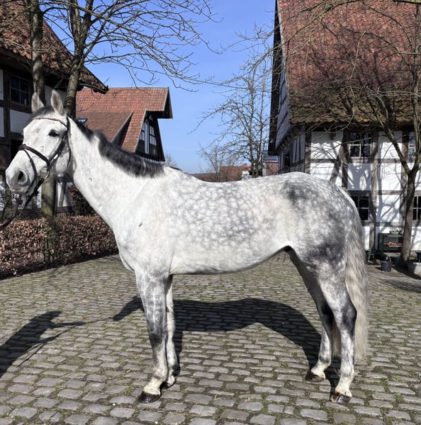 Abzugeben ist ein sehr braver und abgeklärter 9 Jähriger Wallach von Cordess. Cordino zeigt sich in der dressurmäßigen Arbeit leichtrittig mit genügend go. Am Springen hat er viel Freude und zieht den Sprung an. Dabei lässt er sich durch nichts aus der Ruhe bringen. Auch Unterbauten oder Wassergräben sind kein Problem. Beim ausreiten, ganz egal ob alleine oder in der Gruppe ist er ebenfalls entspannt. Er kennt Trecker, Hunde, Kinder uvm. Er steht bei uns im Offenstall in einer Herde mit 24/7 Heu ohne Kraftfutter. Er liebt es über die Wiese zu galoppieren und mit den anderen Pferden zu spielen. Kennt natürlich Anhängerfahren, Schmied, Führanlage, Solarium etc. Er wurde im Januar 2026 inkl. Rücken Geröngt. Soweit uns bekannt gibt es keine Gesundheitlichen Einschränkungen oder Vorerkrankungen. Ein Tüv durch den eigenen Tierarzt kann jederzeit durchgeführt werden. Anfragen gerne per WhatsApp an +49 172 3725170