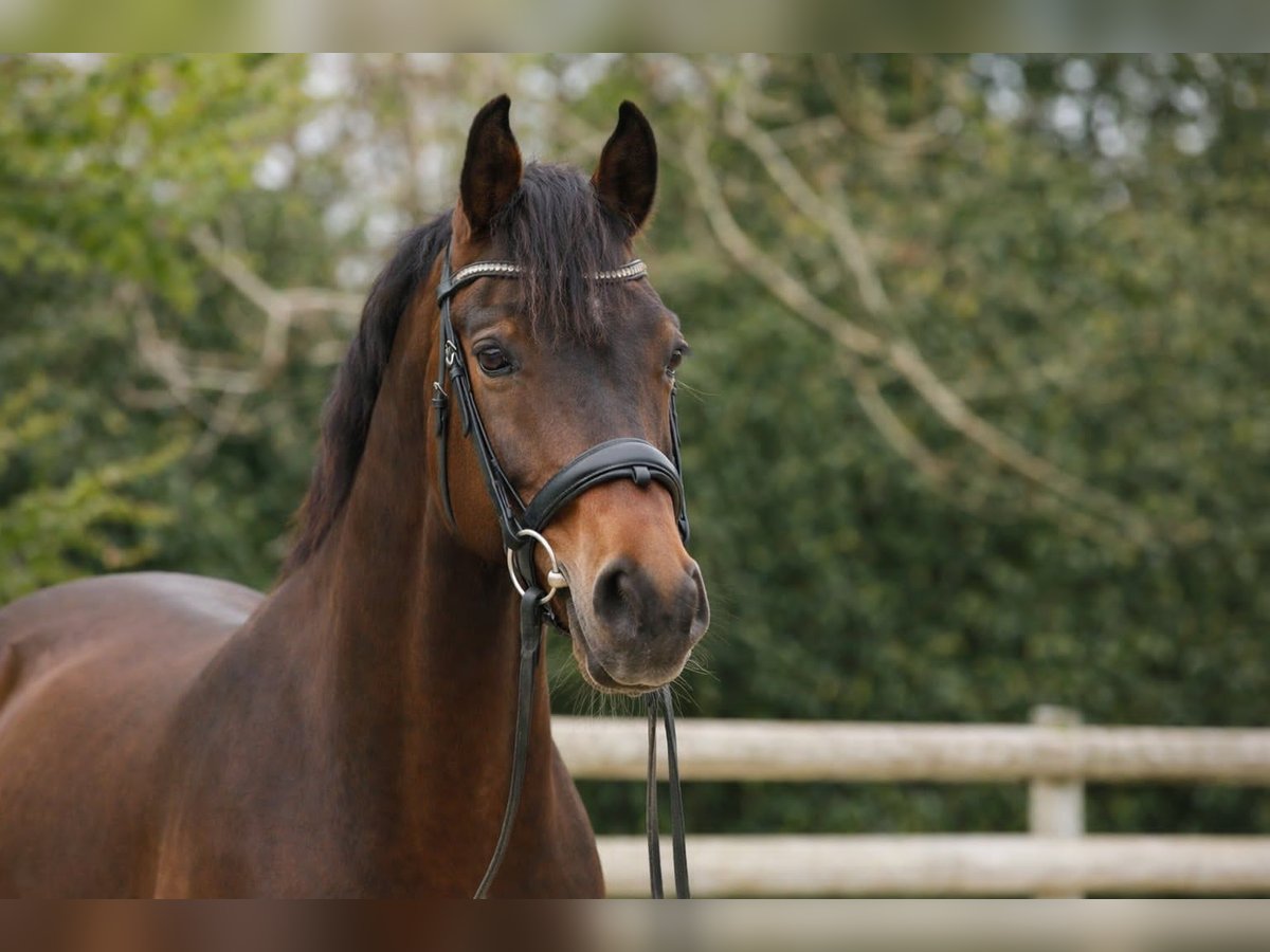 Wir präsentieren Ihnen Apalachee, einen 8-jährigen Westfalen-Gelding mit harmonischer Konstitution und stolzem Ausdruck, der das perfekte Bild eines vielversprechenden Dressurpferdes für den Turniersport verkörpert. Schon bei den ersten Schritten zieht Apalachee alle Blicke auf sich: Sein großzügiger, elastischer und schwungvoller Trab, sein flüssiger, aufwärts gerichteter Galopp sowie sein großzügiger, gelöster Schritt spiegeln die Qualität seiner Herkunft wider. Mit 1,70 m ist er elegant und sportlich gebaut, dabei aber stets ausgewogen und modern in seiner Erscheinung. Seine Abstammung ist äußerst interessant: Vater: Apache – international renommierter KWPN-Hengst, Finalist bei den Weltspielen, bekannt für seine Fähigkeit, seine Nachkommen mit Elastizität, Springvermögen und Ausdrucksstärke in den Gängen zu fördern. Muttervater: Fürst Romancier – bedeutender Oldenburger Zuchtpferd, geschätzt für seine hervorragende Bewegungsqualität und sein zuverlässiges Temperament, Ausgangspunkt vieler leistungsstarker Pferde bis hin zu den höchsten Turnieren. Dieses ausgesuchte Pedigree verleiht ihm eine solide technische und genetische Basis, um eine ambitionierte sportliche Karriere anzustreben. Apalachee ist ein sehr freundliches, menschenbezogenes und engagiertes Pferd, das echten Willen zeigt, sein Bestes zu geben. Dennoch besitzt er ein gewisses Temperament und benötigt einen erfahrenen, präzisen Reiter, der klare Ansagen macht: Ohne diese Führung kann er seinen Charakter zeigen und manchmal etwas anspruchsvoll sein. Diese Sensibilität, gut kanalisiert, macht ihn zu einem Partner mit Präsenz und Engagement unter dem Reiter. Derzeit arbeitet Apalachee auf Niveau Amateur 2, mit: - soliden Grundlagen im Dressurtraining, - im Aufbau befindlichen Tempowechseln, - und einer echten Entwicklungsmöglichkeit für höhere Prüfungen. Er wurde nur selten im Turnier vorgestellt, was seinem zukünftigen Reiter viel Spielraum lässt, ein sportliches Programm entsprechend seinem Potenzial aufzubauen. Apalachee ist ein qualitativ hochwertiges Pferd mit drei sehr schönen Gängen und echtem Potenzial für den Spitzensport. Er wird einen erfahrenen Reiter begeistern, der nach einem eleganten, ausdrucksstarken und liebenswerten Partner sucht, den er gezielt auf zukünftige Prüfungen vorbereiten kann.