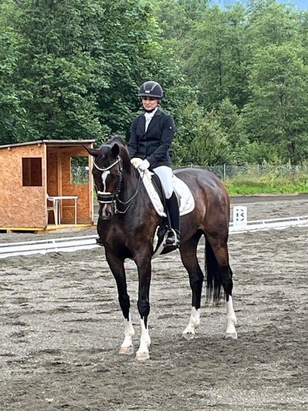 We are looking for a new 5-star home for our Leo. Leo has very beautiful elastic gaits, which have made him a series winner in dressage classes L and M. He has also achieved victories in regular dressage tests up to class M* and placements up to M**. He enjoys jumping as well, but we have only occasionally ridden him over a few gymnastic jumps. We have also taken him out on trails. He is familiar with stable competitions and shows "from the trailer." Loading and trailer riding, as well as farrier and veterinarian visits, are all absolutely problem-free. He currently spends half the day on pasture and has a box with a paddock - he gets along immediately with all horses and always seeks contact. Our dog is allowed to jump on him and even steal carrots from his mouth. He tolerates all of this. BUT: He is simply difficult to ride... The more strength he gains and the more horse he becomes, the less I (1.61 m tall) am able to manage him. We believe that with a rider who is physically better suited to him, he can certainly achieve much more - but I must admit that I will not be that rider... We will definitely not sell him to a beginner. He is also not suitable as a horse for a child or a teenager. We are looking for someone who appreciates what a lovely, handsome guy he is and who feels capable of taking on a challenging journey, as Leo continually presents new puzzles. For the reasons mentioned above, and also because he has a diagnosis (chip) and is a cribber, he is being offered well below value. It is important to us that he finds a good home. We can gladly send a video upon request. Very important: We are selling privately and cannot offer the service of a dealer, nor any kind of guarantee or warranty. Therefore, please ask all questions in advance and express any concerns. We will answer everything to the best of our knowledge and belief.