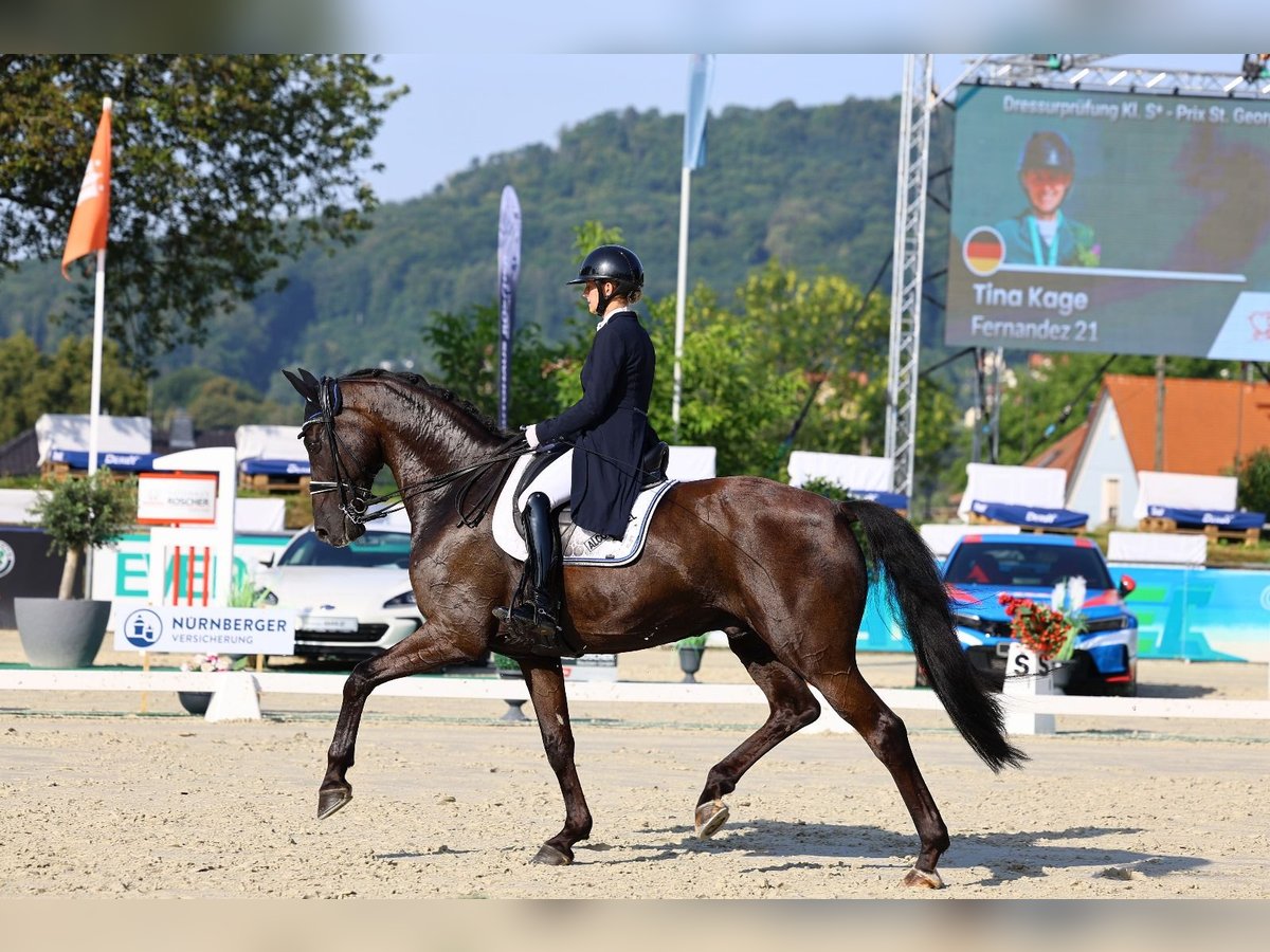 Seit Anfang Juni ist er bei mir im Training und konnte in kurzer Zeit bereits mehrfache Siege und Platzierungen in M- sowie S* und S**-Dressuren sammeln. Er überzeugt im Viereck durch seine schwungvollen, ausdrucksstarken Bewegungen und sein auffälliges Exterieur.