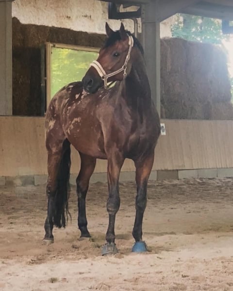 After much serious consideration, I have decided to sell my 14-year-old Württemberger gelding, Harald. I have owned him since 2024. He stands at 186 cm (approximately 16.1 hh). His previous owner, who had him since foalhood, had him competing up to dressage level L. Since I’ve had him, he has only been ridden for leisure, and he was presented by my former riding partner at an A-level dressage competition. He performs his dressage movements without any issues, but he does need a rider who can handle him properly. Harald is a big cuddle bug and loves to be spoiled. His preferred gait is often hard to find, as he tends to be more of a relaxed, easygoing ride. He is also quite calm in the terrain and prefers a gentle pace. In early 2024, he tore his suspensory ligament, but it has now fully healed. All veterinary examinations and treatments at that time confirmed his recovery. Since September 2024, Harald has been living in an active stable with 23 other horses, including geldings and mares. He is four-way shod and has regularly been seen by a physiotherapist. Vaccinations and dental care are up to date. I am not looking to sell him to someone who intends to use him as a mere sport horse or riding machine. Accessories can be purchased together for €1,500. The saddle has recently been reflocked.