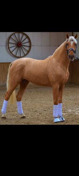 QUALIS AURUM is a stunning horse with an exceptional temperament. He was licensed at three years old and gelded at four. More photos and videos of QUALIS AURUM can be found online. I am selling QUALIS AURUM because I am giving up equestrian sports. He will not be sold for solitary stabling with only pasture turnout; QUALIS AURUM is very social and should continue to be kept in a manner that is appropriate for his well-being. PLACE BEFORE PRICE – this principle is reflected in the asking price. Phone: 0172 4655172