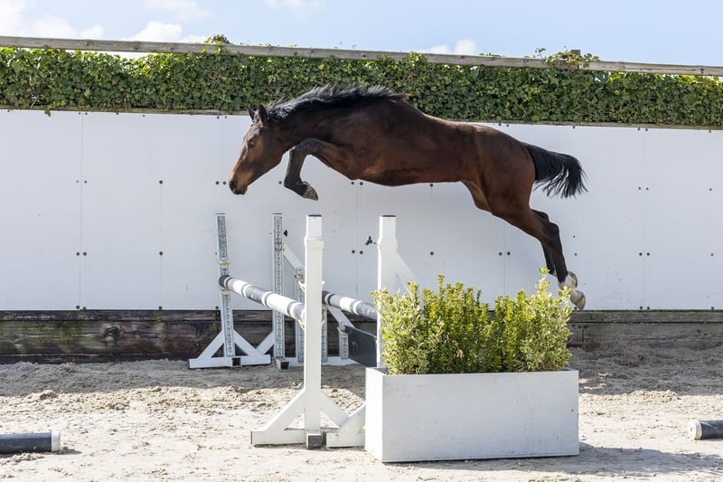Jaarling met veel uitstraling en een zeer aansprekend, sterk model. Staat goed in elkaar en oogt compleet. Laat nu al zien dat hij lichtvoetig is en veel vermogen en een goede manier van springen heeft. Paard met veel bloed en atletisch vermogen. Naar onze mening een belofte voor de toekomst. Vader Chacco-Blue 1.60m Grand Prix Eén van de beste verervers ter wereld met uitzonderlijk veel internationale 1.60m springpaarden en bewezen prestaties op het hoogste niveau. Moeder Centuria 7 (v. Cento 1.60m) 1.60m springen Moederlijn / stam Grootmoeder Corlida (v. Cornet Obolensky 1.60m) – 1.60m springen Overgrootmoeder Salida (v. Calido I) – Calida – 1.55m – Carry Me – 1.40m – Cool Boy 17 – 1.30m Verder in de stam: – Cent Blue – 1.55m – Vertical Limit – 1.60m – Freedom – 1.50m – Spartacus D – 1.45m – Game Boy 63 – 1.40m – Chica Pru – 1.40m – Action Sandra PS – 1.35m Goedgekeurde hengsten in de lijn: – Chacco-Blue – Cento – Cornet Obolensky – Calido I Zeer sterke internationale sportstam met veel 1.50m–1.60m paarden.