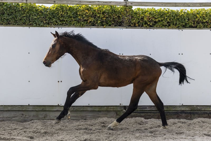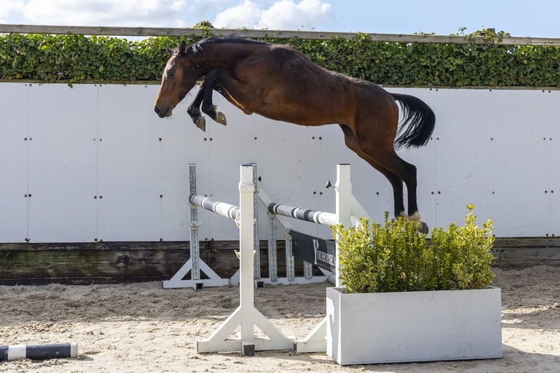 Zeer aparte, moderne tweejarige die naar onze mening al opvallend compleet is. Heeft alles wat een springpaard moet hebben: een grote galop, goed overzicht op de sprong en een lichtvoetige, atletische manier van bewegen. Springt met een constante techniek, toont voorzichtigheid en beschikt over ruim voldoende vermogen. Goed gebouwd en correct in het model. Kortom: een compleet paard en een aanwinst voor iedere sportstal. Vader Riesling van ’t Roosakker – 1.45m Zoon van Comme Il Faut (1.60m) uit de legendarische Roosakker-stam. Moderne hengst met vermogen, techniek en instelling. Moeder Violetta van ’t Hoogeinde (v. Leandro VG 1.50m) Geen sportresultaten Moederlijn / stam Grootmoeder Passoa van ’t Roosakker (v. Kannan 1.60m) Uit de moederlijn: – Sambucco van ’t Hoogeinde – 1.30m Verder in de stam: – La Luna van ’t Roosakker – 1.40m – Lexicon II van ’t Roosakker – 1.50m – L’Esprit Hero Z – 1.60m – Oliska van den Berg – 1.40m – O’Mega H&DB – 1.45m – Nelson van ’t Roosakker – 1.60m – Horpleasure van ’t Roosakker – 1.50m Goedgekeurde hengsten in de lijn: – Comme Il Faut – Cornet Obolensky – Kannan – Echo van ’t Spieveld Sterke internationale prestatiestam met bewezen 1.50m–1.60m sportpaarden.