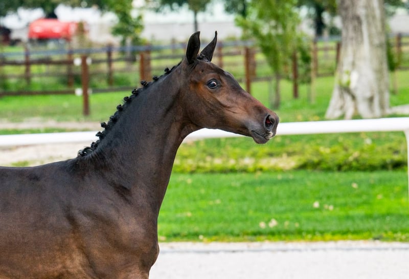 Harwick SA Z vereint die Kraft von Tagine SA und den Einfluss eines der erfolgreichsten Springvererber, Heartbreaker. Dieser Hengstfohlen zeigt frühzeitig Eigenschaften wie Selbstbewusstsein, Intelligenz und schnelle, ausgewogene Bewegungen. Der Vater, Heartbreaker (1,60 m), ist ein Grundpfeiler der modernen Springpferdezucht. Als Wettkämpfer erzielte Heartbreaker große Erfolge, belegte den 4. Platz im Grand Prix von Aachen und den 4. Platz im Grand Prix von London, dank seiner schnellen Reflexe und seines enormen Vermögens. Sein sorgfältiger und effektiver Sprungsstil, gepaart mit einer starken Kampfbereitschaft um den Sieg, machte ihn in jedem Wettbewerb zu einem herausragenden Pferd. Heartbreaker hat diese Eigenschaften an seine Nachkommen weitergegeben und zahlreiche internationale Springpferde hervorgebracht, darunter Romanov (1,60 m), Echo van’t Spieveld (1,60 m) und Verdi (1,60 m). Seine Nachkommen sind bekannt für ihre Reitbarkeit, Schärfe und Sorgfalt – alles Eigenschaften, die sie im Sport und in der Zucht äußerst begehrt machen. Die Mutter, Tagine SA, ist eine Kombination aus Elite-Blutlinien und eine Tochter von Taloubet Z (1,60 m), dem prominenten Springpferd von Christian Ahlmann, und Jenna van’t Meulenhof, einer Vollschwester von Emerald (1,60 m). Die Mutterlinie ist gefüllt mit internationalen Leistungsträgern wie Diamanthina v/h Ruytershof (1,60 m) und Herald van’t Ruytershof (1,60 m), was sicherstellt, dass Harwick Athletik, Sprungkraft und eine natürliche Fähigkeit zum Hochleistungssport erbt. Harwick SA Z zeigt bereits Anzeichen seines Pedigrees: Er ist ein selbstbewusstes und intelligentes Fohlen mit Lernbereitschaft und dem Wunsch zu gefallen. Seine schnellen, kraftvollen Bewegungen und sein starker Körperbau erinnern an Heartbreaker und machen ihn zu einem vielversprechenden Kandidaten für zukünftige Wettbewerbe. Mit den schnellen Reflexen und dem Vermögen von Heartbreaker sowie dem athletischen Talent von Tagine SA ist Harwick gezüchtet, um sowohl im Sport als auch als wertvolle Bereicherung in Zuchtprogrammen erfolgreich zu sein.