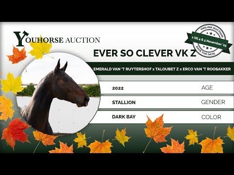 The three-year-old Ever So Clever VK Z is a beautiful dark bay with a good hindleg technique over fences. Sire Emerald van ’t Ruytershof went through an impressive career under Harrie Smolders and has produced a great amount of Grand Prix horses. Eleven of them are even placed at 1.65m to 1.70m level, including Igor, Jaguar van de Berghoeve, Mandato van de Neerheide and Nikka vd Bisschop. Dam Tiptop Van Het Schaeck (Taloubet Z x Erco van ’t Roosakker) competed internationally at 1.45m level with Kelly van Wijk. She is a half-sister to the eight-year-old approved stallion Lotto Indebus Z (1.45m level with Gilles van Hamme and now 1.35m level with Harold Megahey). This line traces back to Sauterelle de la Pomme, dam of the World Cup stallion Vagabond de la Pomme and daughter of Narcotique de Muze II (1.60m Grand Prix). https://youhorse.auction/en/auction/Ever-so-Clever-VK-Z-EMERALD-VAN-T-RUYTERSHOF-x-TALOUBET-Z