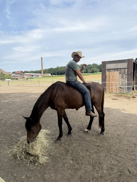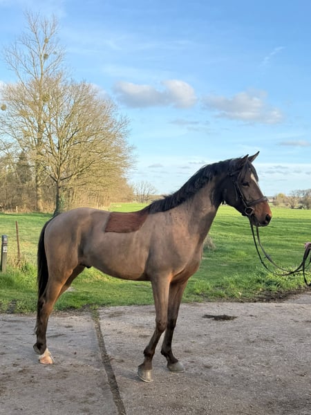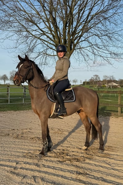 Onze eigen gefokte Donny (Don Bandito Z, wordt in einde mei 4) Een pony die zich onderscheidt door zijn instelling, kwaliteit en natuurlijke aanleg. Donny is een aangename en eerlijke pony in de omgang, met een rustige uitstraling en een werkwillig karakter. Onder het zadel geeft hij een fijn, vertrouwd gevoel en laat hij zich licht en makkelijk rijden. Ondanks zijn relatief jonge leeftijd is hij al fijn en betrouwbaar in de omgang en onder het zadel. ✔️ Braaf in de omgang ✔️ Geen hengstengedrag ✔️ Staat rustig naast de merries ✔️ Braaf op buitenrit, ook alleen ✔️ Ruime, correcte gangen ✔️ Springt met veel vermogen en maakt het altijd passend ✔️ braaf tijdens transport ✔️ Ook braaf zonder zadel te rijden Zijn interessante afstamming (D’Aganix x Voltaire) in combinatie met zijn instelling maakt hem een pony met perspectief voor de toekomst, maar ook nu al prettig in het dagelijks rijden. Geschikt voor een ruiter die op zoek is naar een kwalitatieve pony met een fijne basis en een eerlijk karakter. Wij hebben Donny zelf gefokt, zelf zadelmak gemaakt en opgeleid en kennen hem door en door een pony die met de juiste ruiter volledig tot zijn recht zal komen.