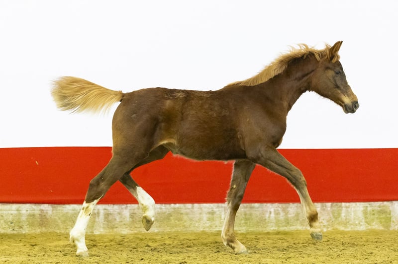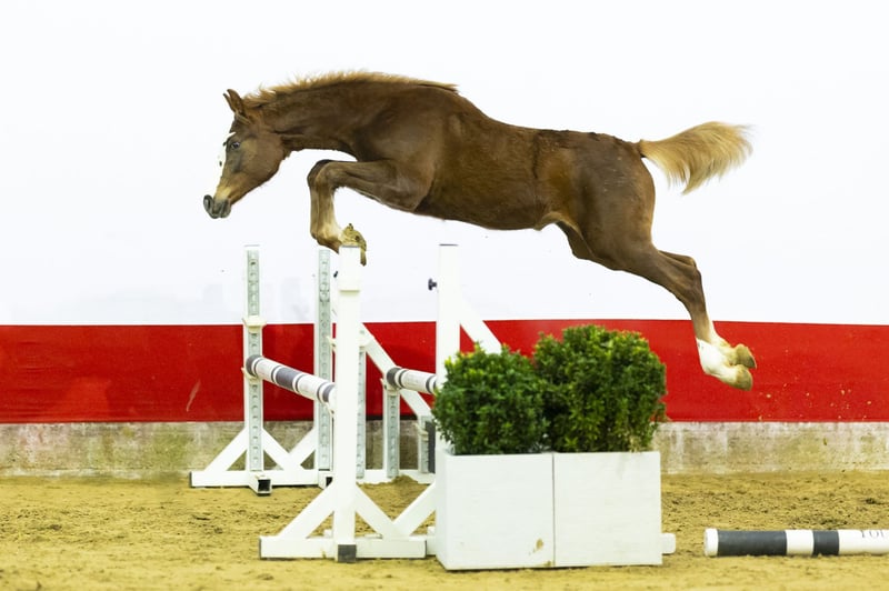 Auffälliger Jahrling mit viel Präsenz. Springt mit kräftigem Abdruck und zeigt eine enorme „Go“-Leistung in ihrer Bewegung. Ein echtes Kraftpaket voller Energie und Stärke. Mit ihrer blonden Mähne und Schweif verleiht sie dem Ganzen einen zusätzlichen Charme. Ein Pferd, in das man sich verlieben kann, und voller vielversprechender Zukunftsaussichten. Züchter Uranus van ’t Zorgvliet (1,20 m Niveau) ist BWP-approbiert und ein Sohn von Emerald van ’t Ruytershof (1,60 m Grand Prix, BWP-Botschafter und in KWPN, Holstein, BWP, Oldenburg und anderen Verbänden anerkannt). Emerald gehört zu den weltweit führenden Produzenten von 1,60 m Springpferden. Die Mutter Cover Girl Z (von Centurio, 1,50 m) stammt ab von Sunny Side Up 111 Z (von Spartacus TN, 1,60 m). Diese Familie brachte Joe Dimaggio 111 Z (1,40 m), Camila 111 (1,60 m CSI5* mit Platzierungen in Calgary und den USA) sowie Dillen 111 Z (1,45 m, Sieger bei CSI4* Vejer) hervor. Weiter in der Mutterlinie finden sich Califa 111 Z (1,30 m) und Girlpower 111 (von Darco). Eine leistungsstarke Familienspur mit Ergebnissen zwischen 1,45 m und 1,60 m in der direkten Linie.