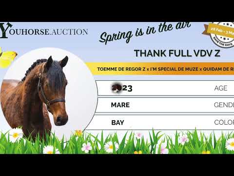 Beautiful 3-year-old mare with a modern type and plenty of blood. She already jumps with confidence and shows that she understands her job. She is light-footed, quick off the ground and demonstrates a very good jumping technique. Her take-off is fast and efficient, and she stays well balanced over the fence. She finishes the jump with ease. In movement she is light and easy to ride. The engine is always on. A true blood-type sporthorse with energy and mindset.