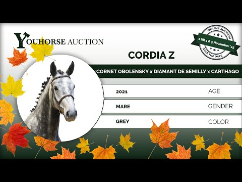 The four-year-old Cordia Z is a true winner for the future. She already shows an impressive take-off and quality, as well as an excellent attitude. Cornet Obolensky gave not only successful showjumping horses but also beautiful and athletic horses. Over 145 offspring have competed in 1.60–1.70m Grands Prix, such as Cornado I, Balou du Reventona and Vangog du Mas. Dam Liathago (Diamant de Semilly) jumps at 1.25m level. Granddam Carthaga Z (Carthago x Almé Z) competed at 1.40m level. Carthaga Z also gave the 1.40m level showjumping horses Falou and Lemon and two at 1.30m and 1.35m level. She is a full sister to approved stallion Eurocommerce Napels (1.50m level with Gerco Schröder) and a half-sister to the 1.55m Grand Prix horse Callaho Laoios with Alexandra Ric-Hansen (RSA). https://youhorse.auction/en/auction/Cordia-Z-CORNET-OBOLENSKY-x-DIAMANT-DE-SEMILLY-5092