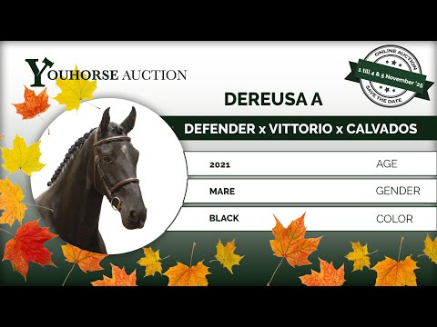 The four-year-old Dereusa Z is a striking black mare who had only been under saddle for four weeks during the filming day. A real eye-catcher who jumps with push-off and quality, no surprise given her pedigree. Both sire and dam come from the Teusi line. Sire Defender VDS Z is an eight-year-old stallion competing at international 1.40m level, bred out of the half-sister of stallion Etoulon VDL (1.50m level), the 1.60m Grand Prix horse Dereusa S and two more 1.50m level showjumping horses. Dam Hereusa S (Vittorio) is bred out of Utareusa (Calvados), dam of Etoulon VDL and the other aforementioned horses. This damline has already been giving high-quality (inter)national show jumpers for generations, up to the highest level. https://youhorse.auction/en/auction/Dereusa-A-Z-DEFENDER-x-VITTORIO