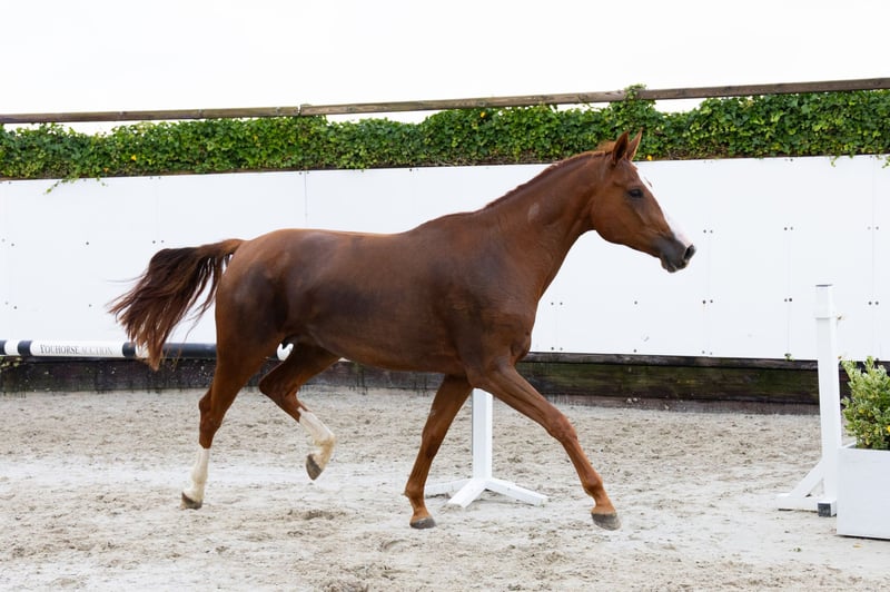 The four-year-old Niecara Z has foaled this year and is at a lovely age to begin her training. She is a light-footed mare. Her sire, Nixon van ’t Meulenhof, competed in 1.60m Grand Prix with Jos Verlooy and is a half-brother to five 1.60–1.70m Grand Prix horses, including the famous Emerald van ’t Ruytershof. Nixon’s oldest offspring are eight years old, such as Renshaw van ’t Meulenhof (1.55m GP) and the 1.50m jumping Remco van den Uilenbos and Wheeler. Her dam, Lisa du Mesnil, descends from top sire Stakkato. Her granddam, Zienna du Mesnil (Quattro B), is an elite mare that competed in 1.30m show jumping courses. Zienna produced the 1.40m jumping horse Enrico du Mesnil and is a half-sister to three 1.60m Grand Prix horses: Pomme-Lady, Triton, and Wienna du Mesnil.