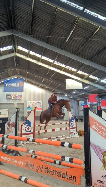 **Te koop: Veelbelovende Zangersheide merrie** Wij bieden een prachtige Zangersheide merrie aan, geboren in 2017. Deze elegante vos heeft een stokmaat van 166 cm en beschikt over een fijne springtechniek. Ze is geschikt voor overgang pony naar paard, eerste eigen paard, om vanaf echte beginner het springen te leren of om gewoon lekker meteen aan de slag te gaan voor de sport. Ze heeft veel ervaring op vreemdterrein. Gaat bijna iedere wk wel ergens op verplaatsing trainen / wedstrijden / bosrit / strandrit enz doen. Ik heb haar zelf in de eventing gereden, in dressuur en springen een zeer fijn paard wat nergens naar kijkt.. In de cross wat kijkerig waardoor ze in de cross wel een ruiter nodig heeft die haar goed ondersteund. Ik zie haar zelf eerder als topper in het springen. Dit is ook de reden dat ik haar verkoop omdat ik er teveel aan moet rijden voor de cross en ik 1 been heb met zenuwschade en dit niet kan ( en mijn ambitie ligt echt bij eventing )