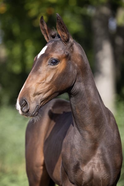 Fohlen von El Barone III x Calvados Ein wunderschön elegantes schwarzes Fohlen mit einem liebenswerten Charakter. Es ist halstermak und läuft brav an der Leine mit. Zolaniki hat mit der norwegischen Reiterin Celine Marie Foss national 1,40 m Springen geritten und ist auch international 1,35 m erfolgreich gewesen. Zolaniki stammt aus der bekannten Niki-Linie von H. Hartlief. Diese Blutlinie ist bekannt für ihre zahlreichen internationalen Springpferde und mehrere gekörte Hengste. Die Stammmutter Niki brachte unter anderem das legendäre Grand-Prix-Pferd von Nick Skelton, das zweimal den Großen Preis von Aachen gewann, sowie mehrere Medaillen bei Weltmeisterschaften. Nachkommen: Bevor Zolaniki selbst in den Sport eingestiegen ist, stellte sie den gekörten Grand-Prix-Hengst Don Diablo HX (v. Vittorio) vor. Dieser sprang zuvor mit Michel Hendrix auf höchstem Niveau und tut dies nun mit dem Briten Nick Benterman. Das Fohlen wurde am 10. Juli 2025 geboren und kann ab dem 10. Dezember 2025 abgegeben werden.