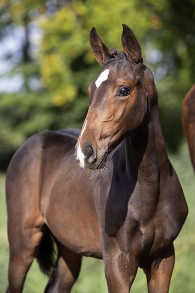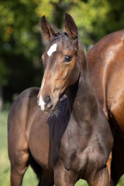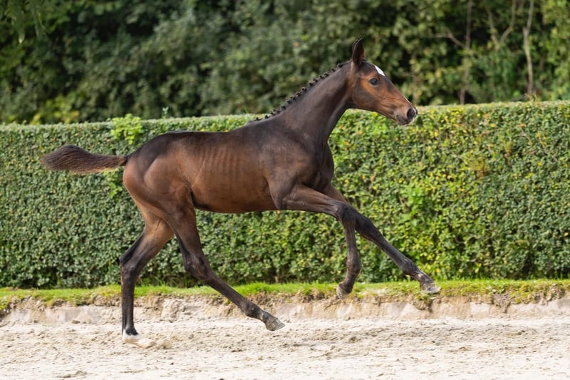 Veulen van El Barone III x Calvados Prachtig elegant zwart veulen met een lief karakter. Is halstermak en loopt braaf mee aan een touwtje. Zolaniki heeft met de Noorse Celine Marie Foss nationaal 1.40m gesprongen en tevens internationaal 1.35m. Zolaniki komt uit de bekende Niki-stam van H. Hartlief. Deze stam staat bekend vanwege haar vele internationale springpaarden en meerdere goedgekeurde hengsten. Stammoeder Niki bracht onder andere het legendarische Grand-Prix paard van Nick Skelton die twee keer de Grote Prijs van Aken won en meerdere medailles wonnen op wereldkampioenschappen. Nakomelingen: Voordat Zolaniki zelf aan het werk ging, gaf ze de goedgekeurde Grand Prix hengst Don Diablo HX (v. Vittorio). Hij sprong voorheen met Michel Hendrix op het hoogste niveau en doet dat nu met de Engelsman Nick Benterman. Veulen is geboren op 10 juli 2025 en kan vanaf 10 december 2025 gespeend gaan worden.