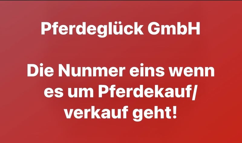 We are your reliable partner when it comes to buying a horse! Your advantages with us: - telephone availability daily from 7 a.m. - 10 p.m. - Possibility of test riding daily from 9 am - 8 pm - Constantly a variety of different horses - two indoor riding arenas, regardless of the weather - Top advice and support - Organization of the AKU - Transportation of the horse to the destination - and much more We are also always on the lookout for well-behaved leisure horses for our customers! ♥️ Requirements: Healthy Easy to ride 150 - 175 cm All breeds No bad habits Pick up of the horse possible! Pferdeglück GmbH Pelmberg 15 4202 Hellmonsödt Please send information on WhatsApp: 00436603632373