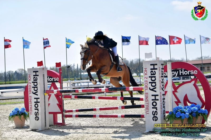 A beautiful and very well-behaved horse from 2010, the ideal companion for taking the riding test and the first level. In his career, he has jumped up to 125, currently with his owner up to 115 in sports. Good, respectful, and educational. Easy to handle on the ground. Healthy, vaccinated. Available for viewing and trying out at the stable in the province of Milan. The price will be communicated privately.