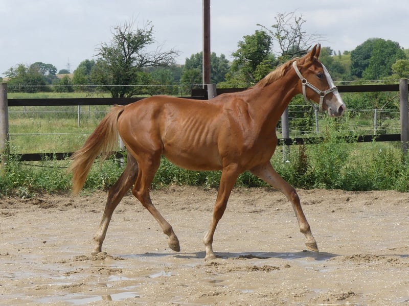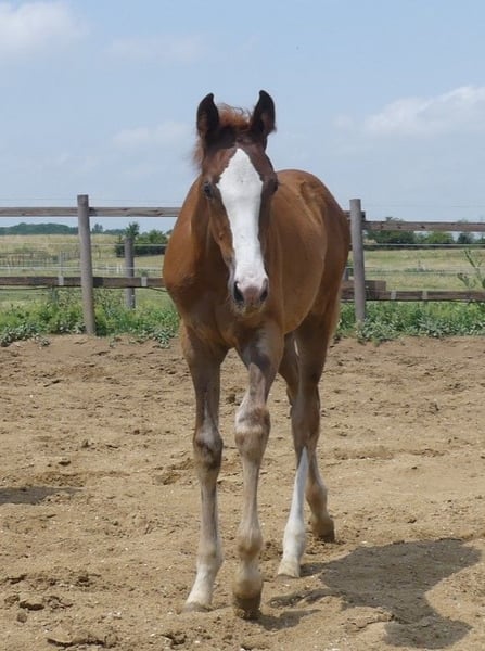 Półkrwi od stóp do głów, stojący w środkowej ramie, źrebak o bardzo elastycznych ruchach, pięknie regulowany i ekspansywny. Po stronie ojca ogier, który ma w swoim rodowodzie wszystkie wielkie reproduktory, które odniosły sukces na świecie. Rasowa matka wyróżnia się dziedzicznością z bardzo dobrymi ruchami i może również przekonać na skoku ! Oto parowanie, z którego z pewnością możemy liczyć na wiele.