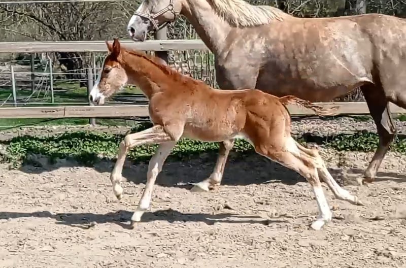 Un mestizo de pies a cabeza, parado en el marco medio, potro con movimientos muy elásticos, bellamente regulado y que ocupa mucho espacio. Por el lado del padre, un semental que tiene todos los grandes sementales en su pedigrí que han tenido éxito en los cursos del mundo. ¡La madre pura sangre sobresale en herencia con muy buenos movimientos y también puede convencer en el salto! He aquí un maridaje del que sin duda todavía podemos esperar mucho.