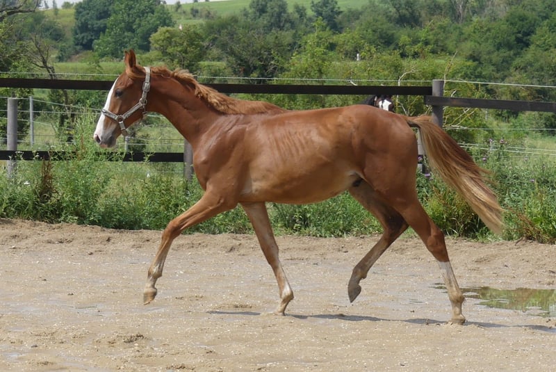 Ein Halbblüter vom Scheitel bis zur Sohle, im mittleren Rahmen stehend, Wallach mit sehr elastischem Bewegungsablauf, schön geregelt und raumgreifend. Auf der Vaterseite ein Hengst der alle Großen Vererber im Pedigree hat die in den Parcours der Welt erfolgreich waren. Die Vollblut Mutter zeichnet sich in der Vererbung mit sehr guten Bewegungen aus und kann auch am Sprung überzeugen ! Hier eine Anpaarung von der wir sicher noch viel erhoffen können.