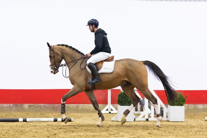 A horse with scope, attitude and rideability Grandominago Z is a horse with impressive scope and a strong presence. He shows spacious movement and has workable, rideable blood. Despite his size, he is already very pleasant to ride and shows sharpness at the jump. Only six weeks under saddle, he already comes back very well from the fence and shows notable strength, where bigger horses at this age often still lack power. He jumps back nicely through the withers towards the rider, creating a comfortable and confident feeling. A horse with a good attitude, overview and clear sport potential.