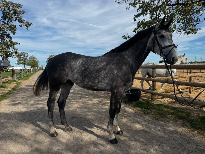 *** Please inquire via WhatsApp at 0176 24297968 *** Caan is trained and worked in accordance with his age and size. He confidently performs all three basic gaits in the arena, on the flat, and in the field, showing himself to be uncomplicated and very pleasant in the contact. He has already jumped a small course well, but has not yet been presented at competitions. In handling, he is well-behaved and easy to manage; he also goes out daily in a group and shows himself to be very compatible.