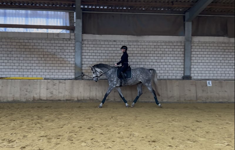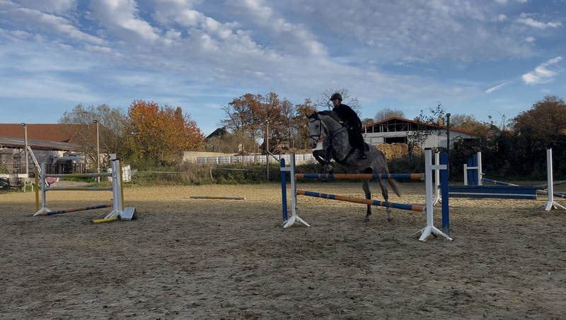 For sale is a 6-year-old Zangersheide gelding, distinguished by his quality and appearance. The 1.75 m tall, elegant chestnut (apple) grey impresses with his very friendly and balanced temperament. His main focus is show jumping, where he demonstrates his talent. The gelding is well-trained and shows great potential for high-level competition. He is very reliable over fences, jumps from all situations, and does not spook. This year, he competed in his first show season, achieving multiple placings in class A and even winning some. He also placed directly in his first L-level jumping competition with a score of 7.8. If you are interested or require further information, please feel free to contact me. Videos can also be sent upon request. To prevent riding tourism, we charge €20 for a trial ride, which will be deducted from the purchase price if a sale is made later.